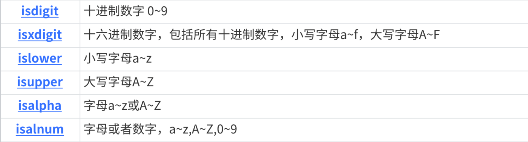 常见的字符串分类函数,包含在<ctype.h>这个头文件中