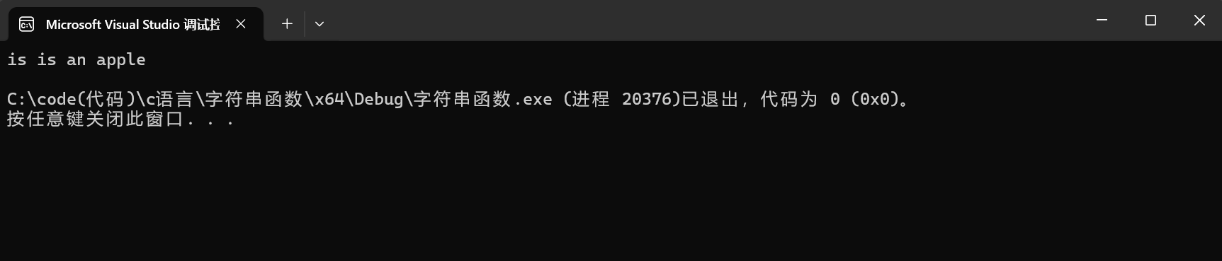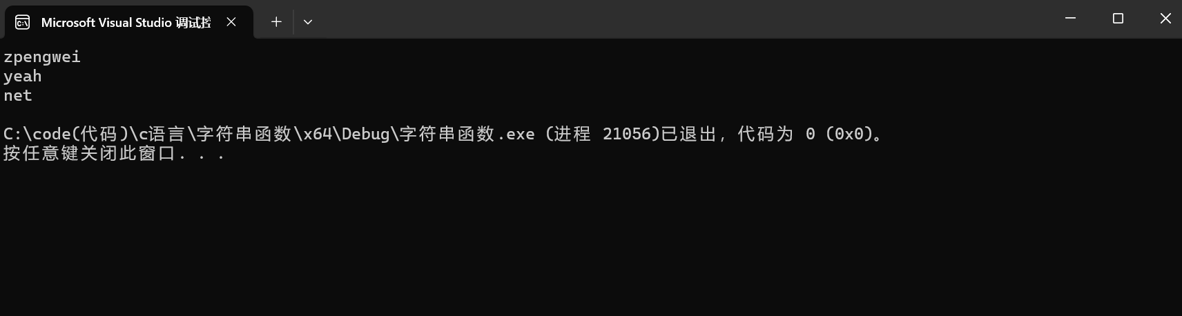 //继续将分割字符改为'\0',并返回切割后字符串"yeah"的地址