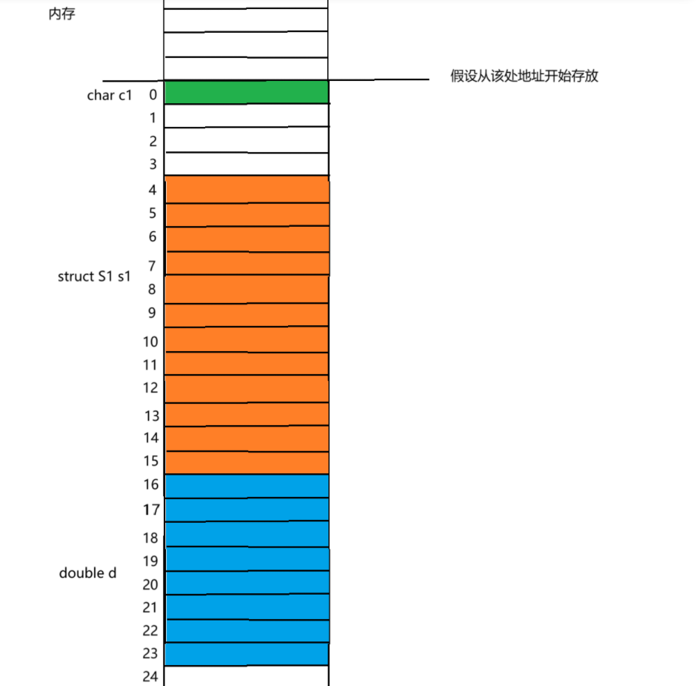 char c1;//第一个成员 存放在偏移量为0的地址处