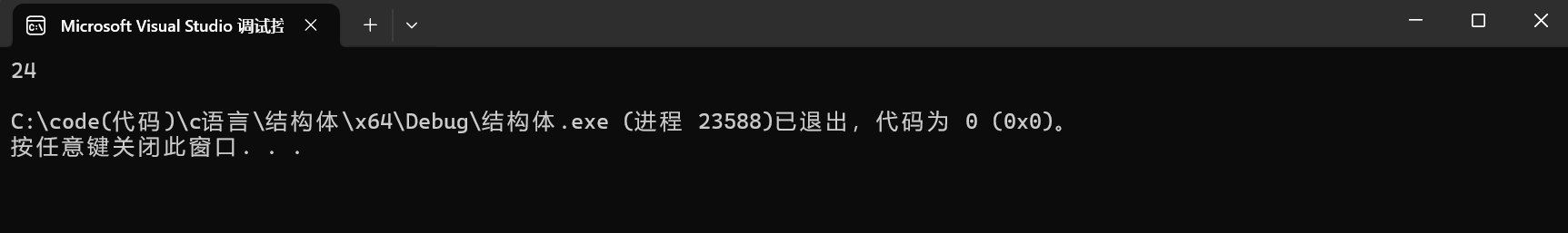 最终结果为:结构体的总大小为成员变量中对齐数的整数倍,成员变量中最大的对齐数为8,故而总大小为24个字节。