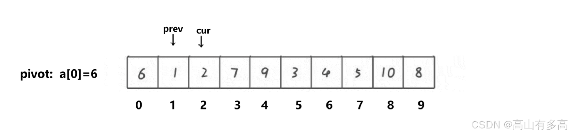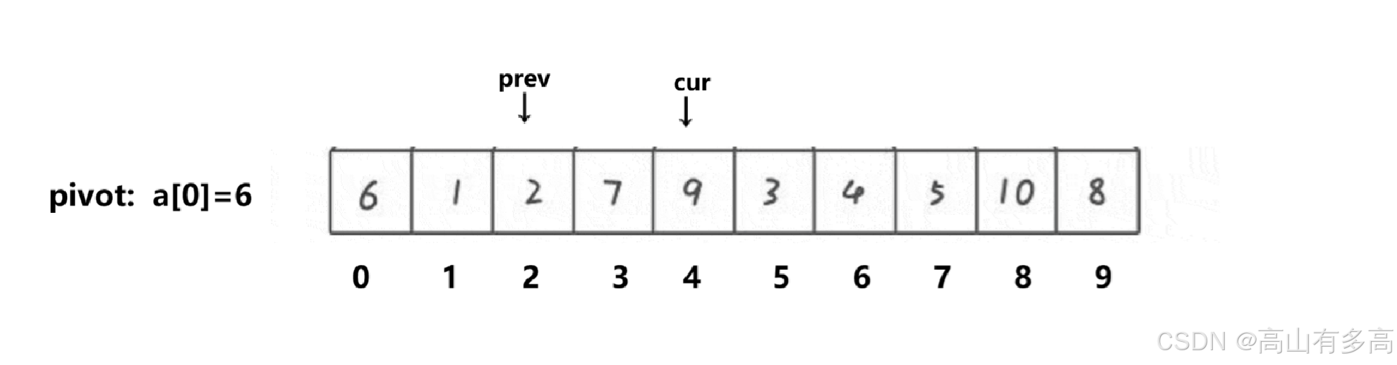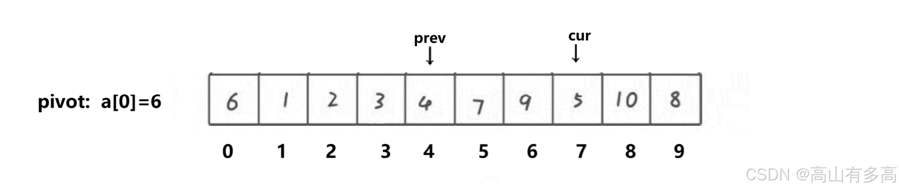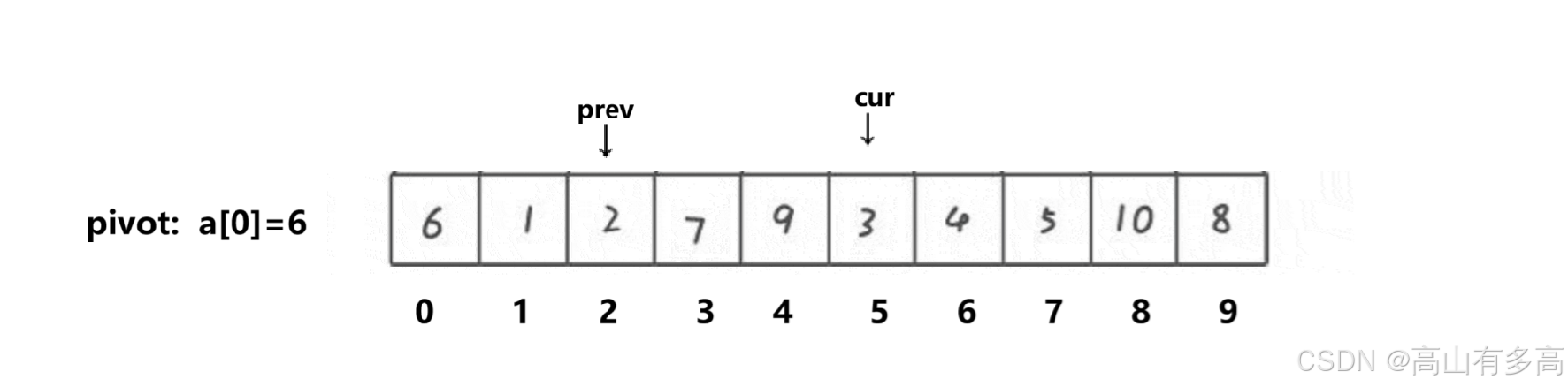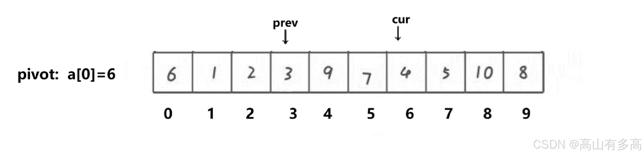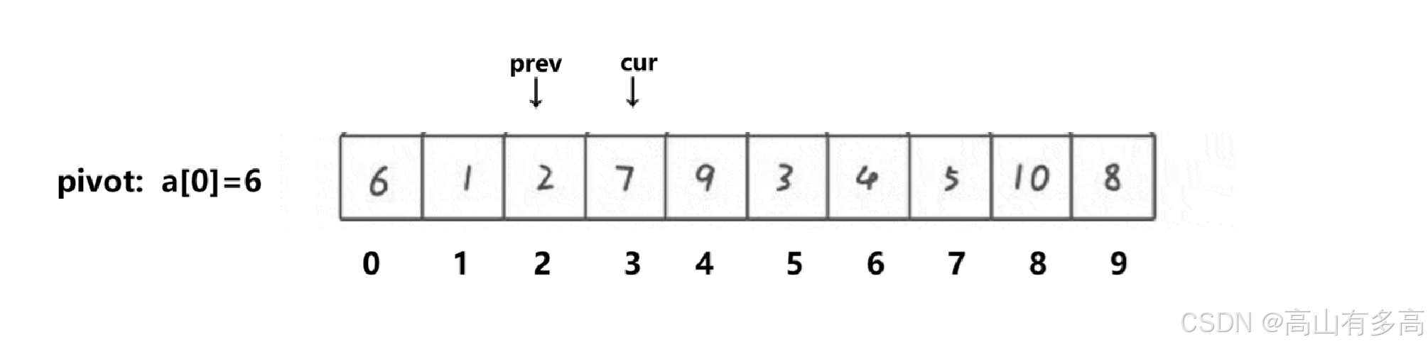 //当快指针找到比a[keyi]小的元素,让慢指针++,交换a[cur]与a[prev]