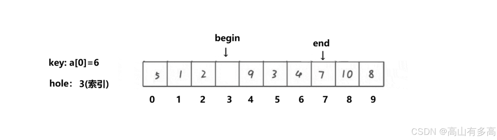 数组:[ 🕳️, 1, 2, 7, 9, 3, 4, 5, 10, 8 ] (key=6)
