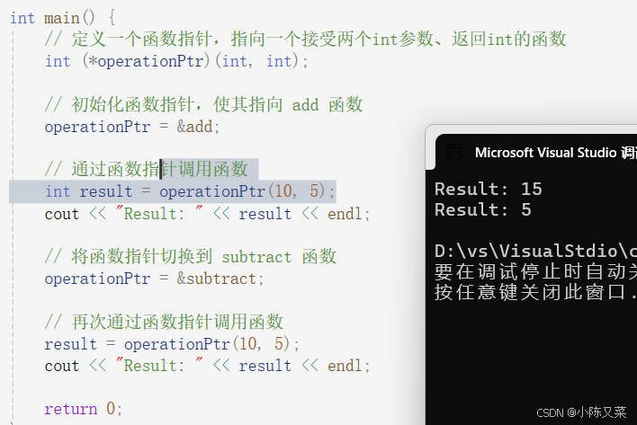 // g++在这条规则上遵循了C++11语言规范。函数指针是指向函数的指针变量。可以用来存储函数的地址,允许在运行时动态选择要调用的函数。