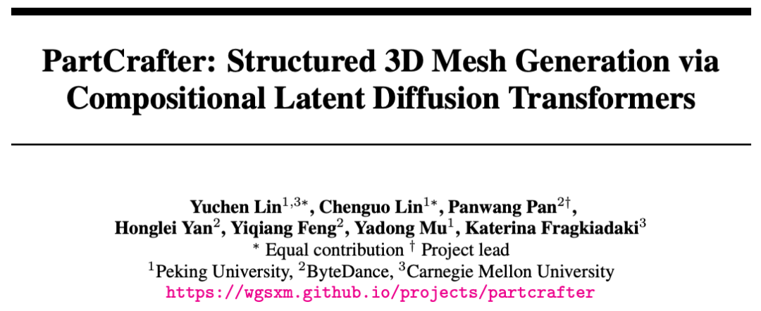 为了突破这一局限,来自北京大学、字节跳动和卡耐基梅隆大学的研究者们联合提出了 PartCrafter。这款创新的模型开创了结构化生成的新理念,能够直接从单张 2D 图像生成由多个、具有语义意义且可独立操作的部件构成的复杂 3D 网格模型。PartCrafter 显著增强了 3D 生成的可控性与可解释性,为更直观、模块化的内容创作流程铺平了道路。