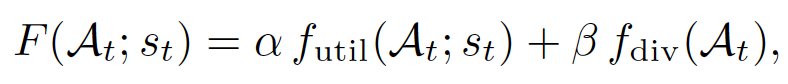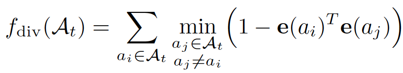 具体来说,DynaAct 定义的子模函数包括 utility 和 diversity 两个部分。前者度量动作空间与当前状态的相似度;而后者则刻画动作空间中动作的冗余度: