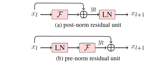 在使用 Post-Norm 的早期 Transformer 中,随着网络不断加深,训练稳定性成了一个棘手的问题。为改善这一状况,研究者尝试调整 LayerNorm 的位置。于是,一种新的 Pre-Norm 结构逐渐被采用。
