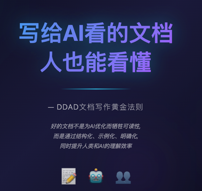 在AI时代下,“写给AI看的文档,人也能看懂”作为一种高效且人性化的文档写作哲学。它不仅是一句口号,更是DDAD(文档驱动的AI开发)实践中的黄金法则。下面这个表格可以帮助您快速把握其核心要点。