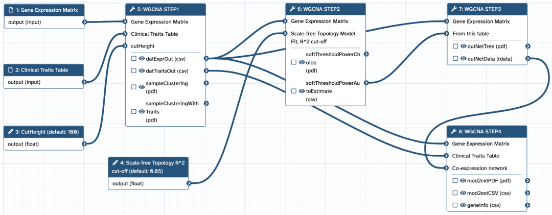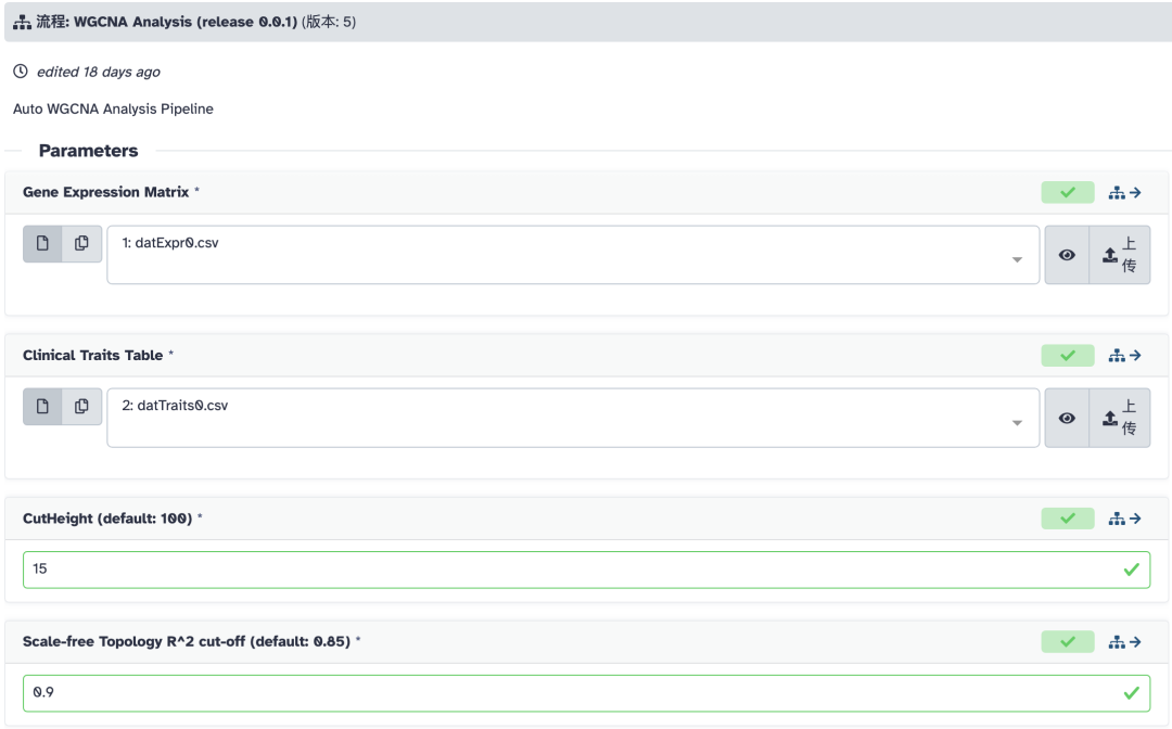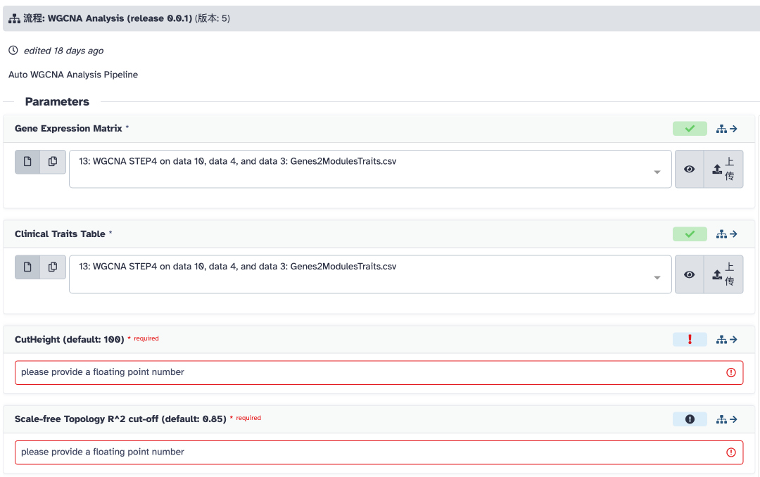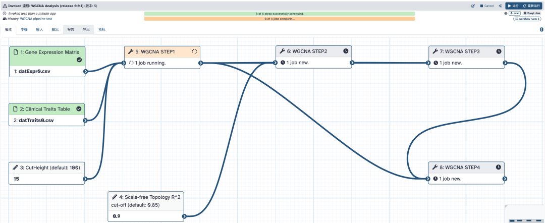 点击流程名称:WGCNA Analysis (release 0.0.1),可以预览一下流程所要执行的步骤: