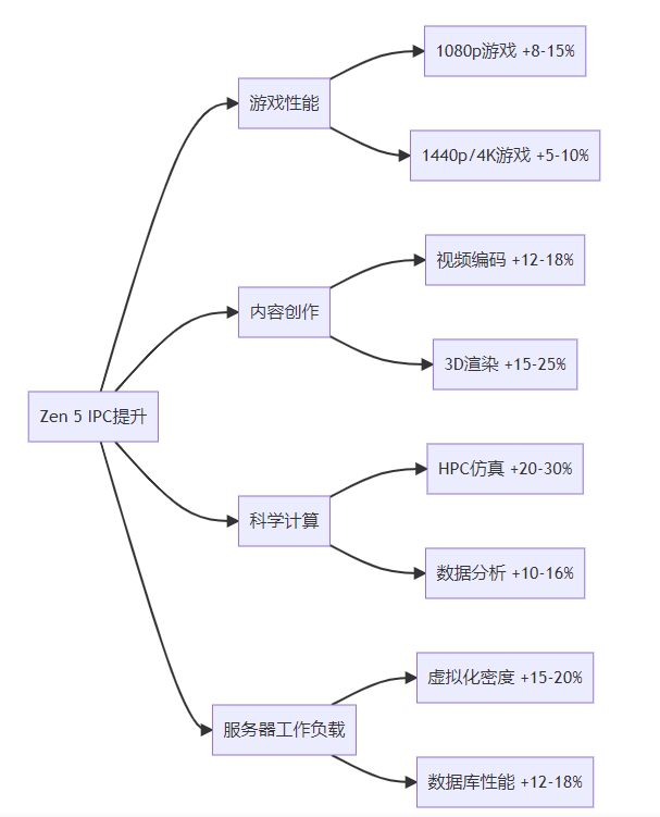 工作负载类型 | Zen 4性能基准 | Zen 5预计提升 | 主要改进来源 |
