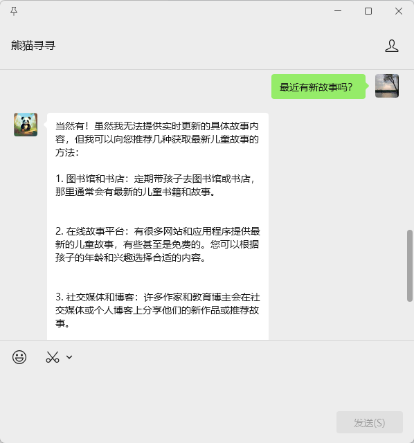 它最适合内容类小号 —— 像 “熊猫寻寻” 这种专注垂直领域的账号,能把历史内容盘活成互动工具,既省了人工答疑的时间,又让粉丝感受到 “绘本角色活过来” 的陪伴感。