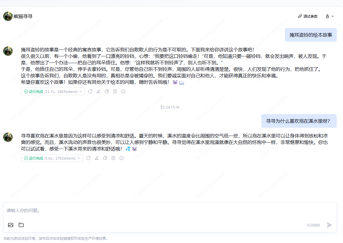 元器提供了混元、DeepSeek、Kimi 等模型,我选了DeepSeek—— 它的语义理解更细腻,适合解读绘本里的软萌情节,比如粉丝问 “寻寻为什么喜欢爬树”,能给出带童趣的回答。
