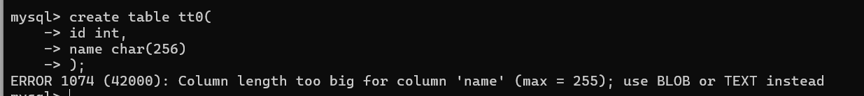 mysql> create table tt11(name varchar(21845))charset=utf8;