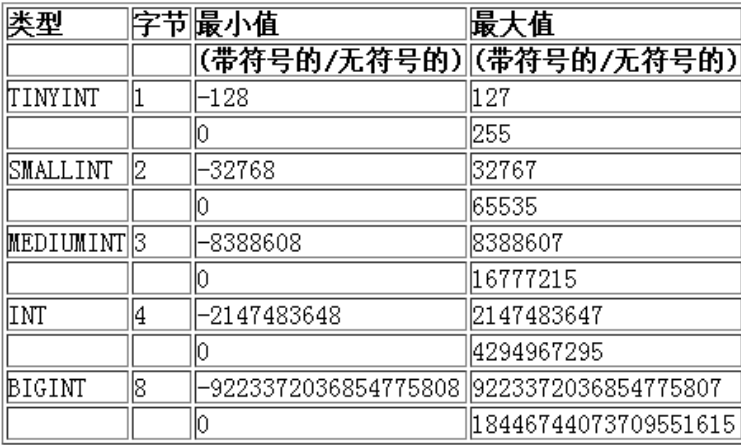 3 rows in set (0.00 sec)说明: 在MySQL中,整型可以指定是有符号的和无符号的,默认是有符号的。 可以通过UNSIGNED来说明某个字段是无符号的