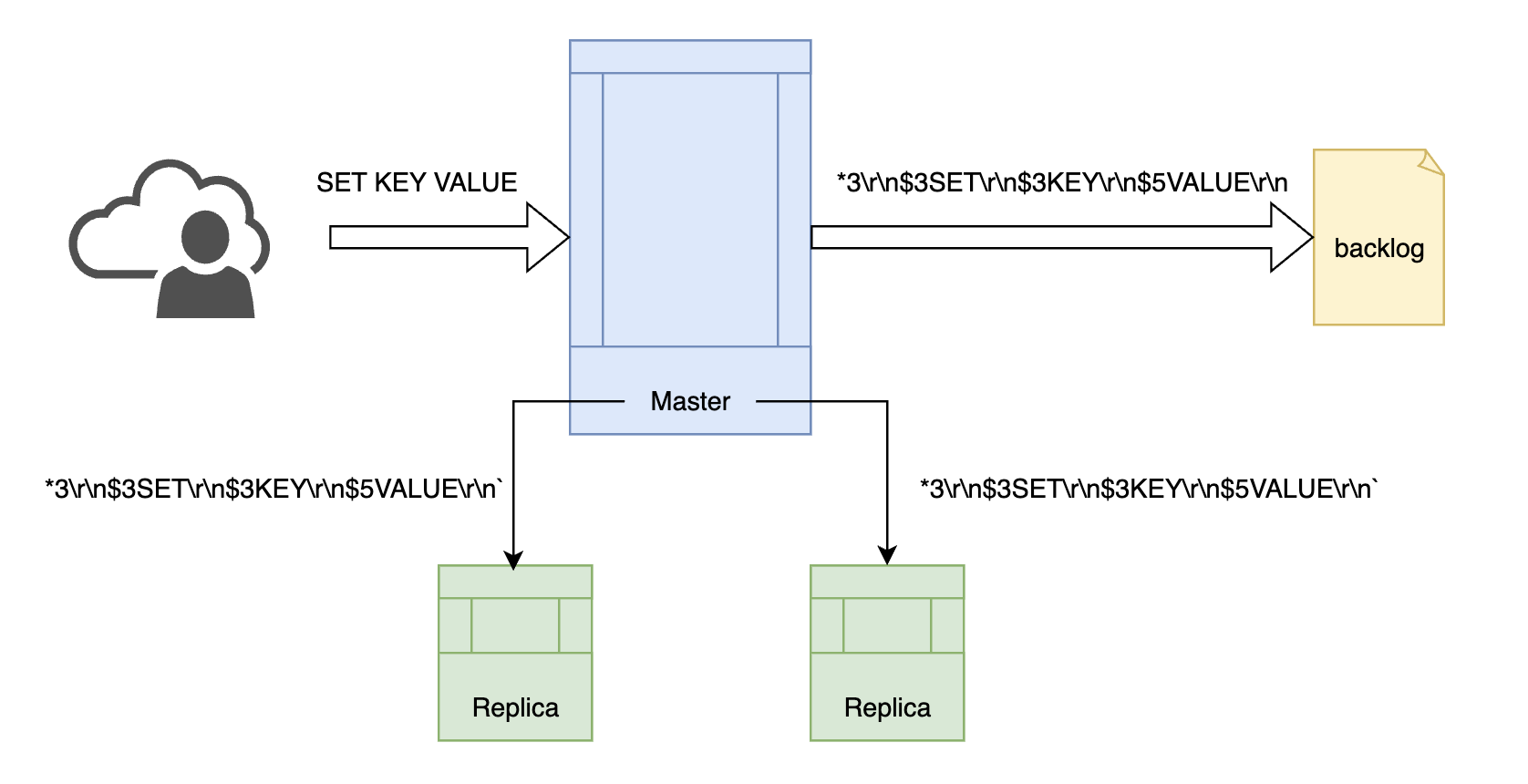 主节点发送给从节点和复制积压缓冲区的命令都为RESP格式。