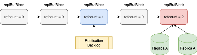 int refcount; /* 引用计数:有多少个从节点或backlog在使用 */
