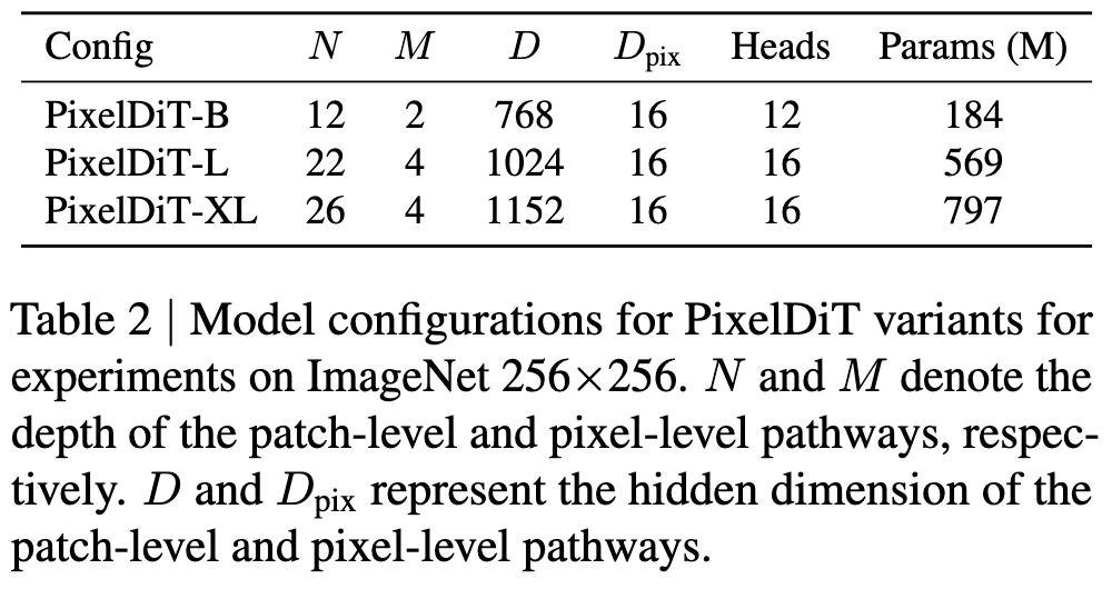 设计要点。Patch 级路径仅处理 patch tokens 以捕获全局语义。通过将细节精修委托给像素级路径,本文可以采用较大的 patch 尺寸 ,这缩短了序列长度并加速了推理,同时保留了逐像素的保真度。此外,像素级路径在缩减的隐藏维度 (例如 )下运行,确保密集的逐像素计算保持高效。