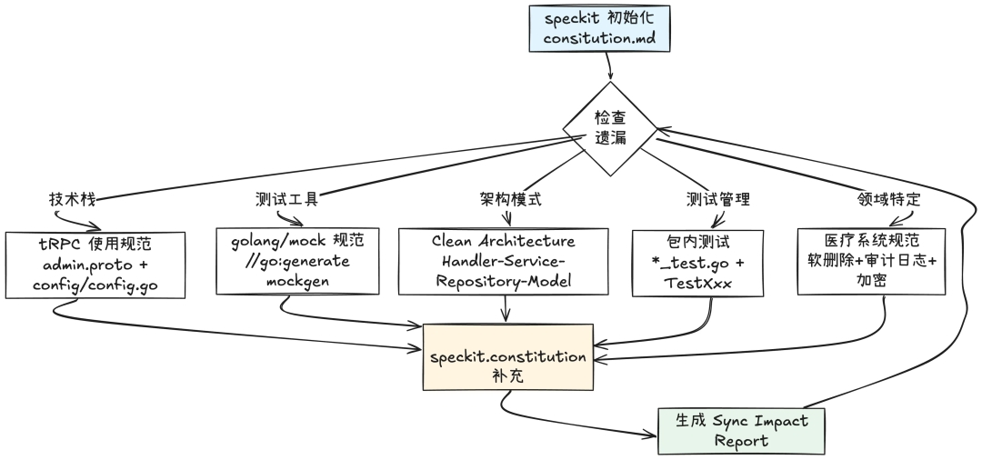 /speckit.constitution 增加测试规范: mock 文件通过 go:generate mockgen 生成,并于与测试代码放在同一个包package文件夹下面失败点 2:评审缺位——对 AI 生成的 SPEC 缺乏严格审查