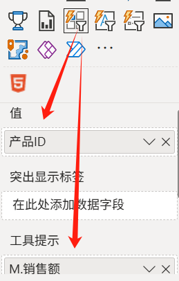 使用内置按钮切片器视觉对象如下拖拽字段,工具提示中的指标用来排序: