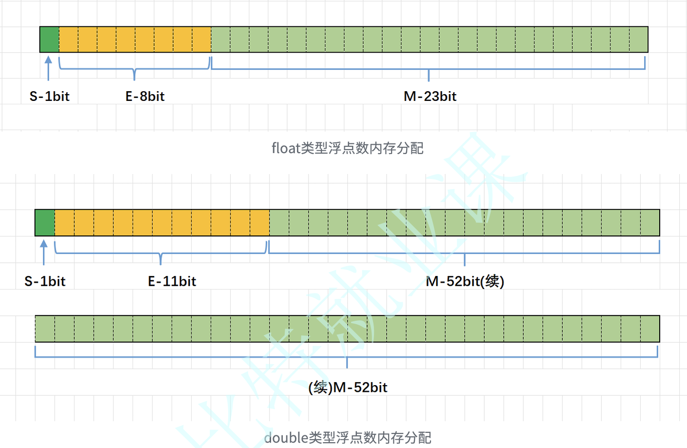 2,为什么是127(1023):存入的E为8位,是无符号整数,取值范围为0~255;E为11位,取值范围为0~2047;