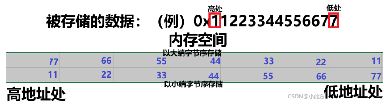 是指数据的低位字节内容保存在内存的高地址处,而数据的高位字节内容,保存在内存的低地址处。