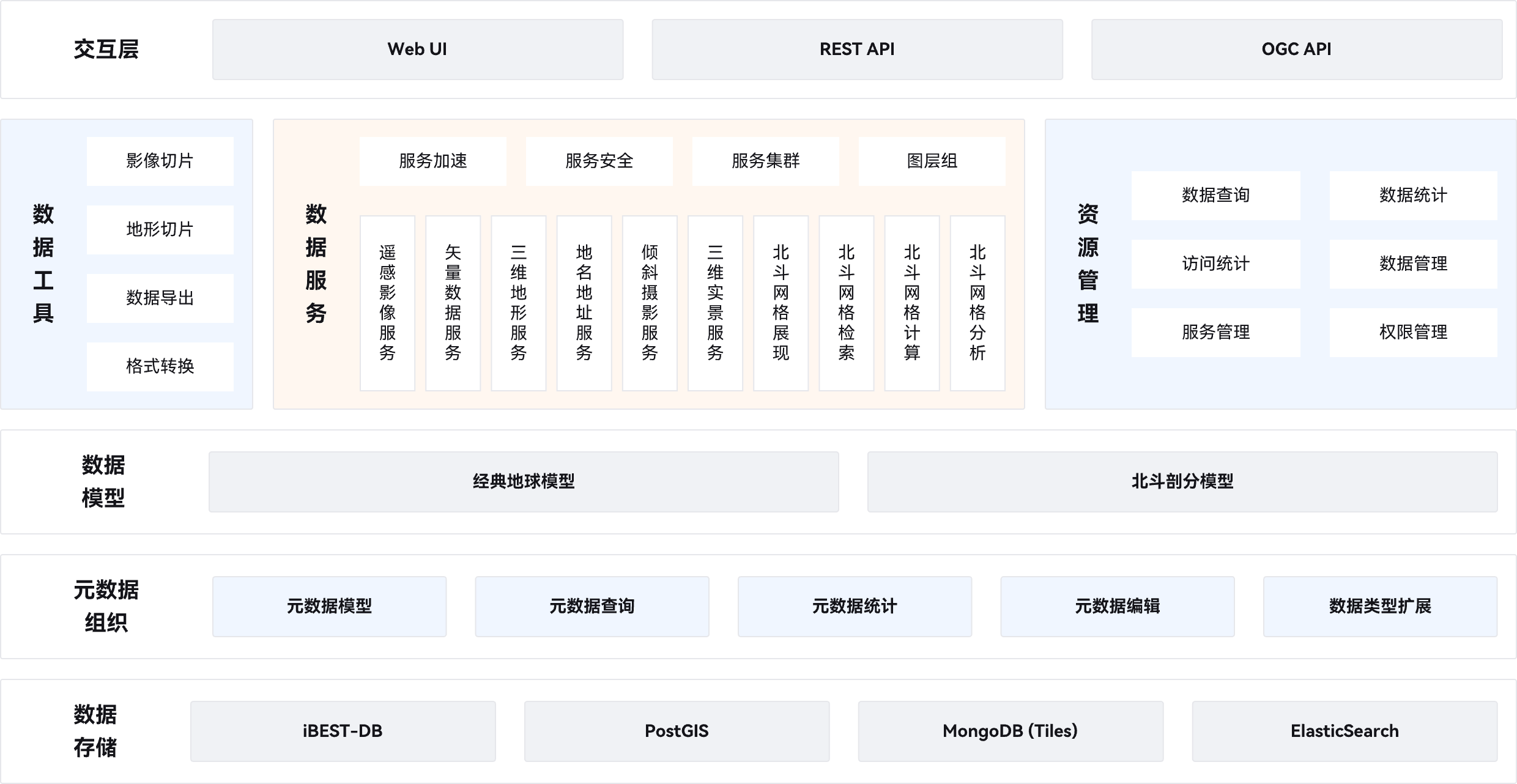 内置自研时空数据库iBEST-DB,实现时空数据存储、计算和服务深度融合,提升时空数据存储与检索效率。