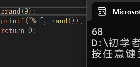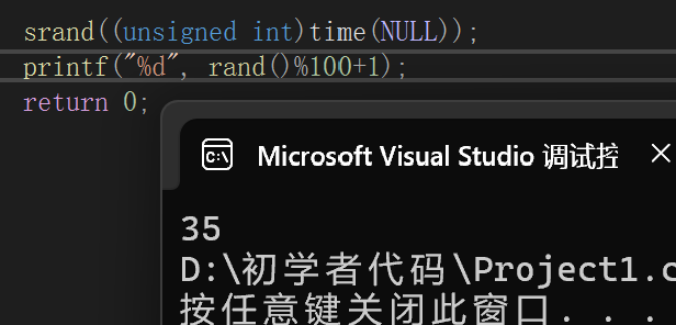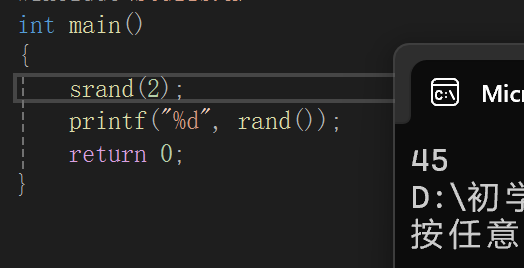 因此,我们引入srand函数对种子进行初始化(放在rand函数的前面)