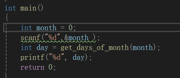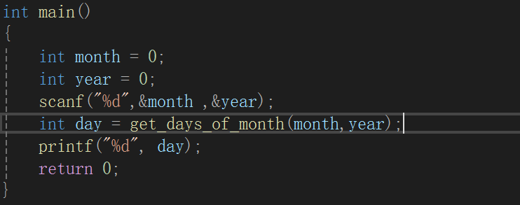 追加了变量year,包括输入,和调用get_days_of_month函数的实际参数。