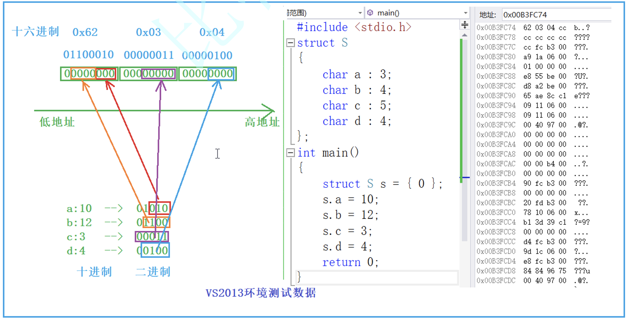 如图,我们把这样一张图看作是内存的一个片段(用来存放结构体),