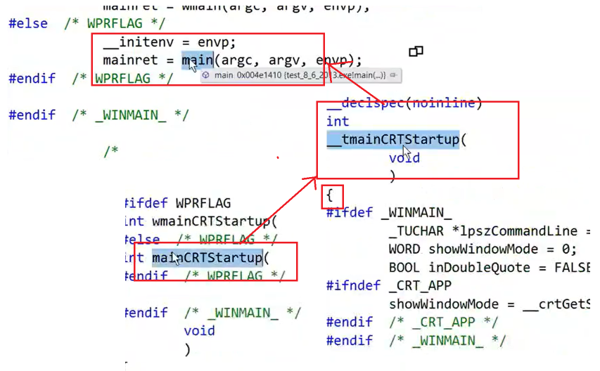 ● mainCRTStartup()调用了__tmainCRTStartup();