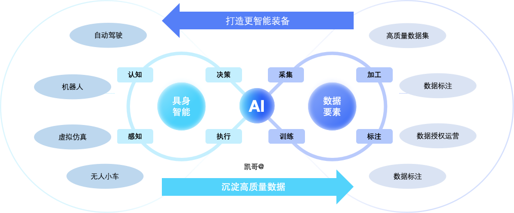 具身智能,让 AI 从屏幕和云端走向真实世界的每一寸空间;数据要素,则为这一切提供源源不断的燃料与土壤。二者在 AI 的中枢作用下形成闭环,构成了新一代智能产业体系的基本运行逻辑。