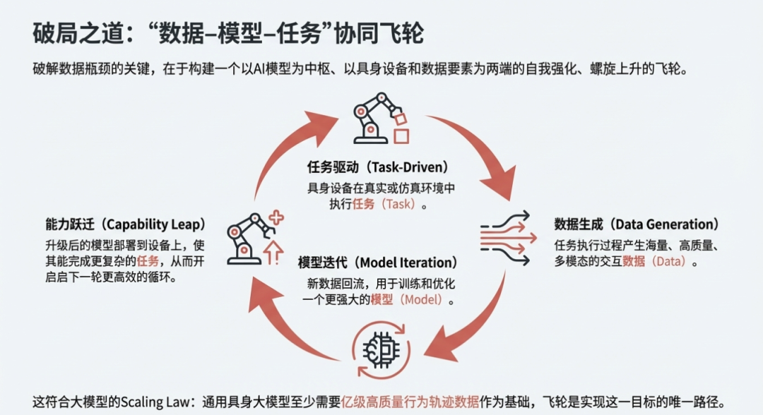 在这种背景下,业界提出了以**“数据–模型–任务”协同飞轮**为核心的系统路径。其基本思想是: