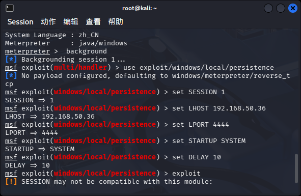 但是,当前方式仅支持设备在没有关机的情况下。让设备关机后,还是无法连接。而msf是提供了最新的持久化模块。