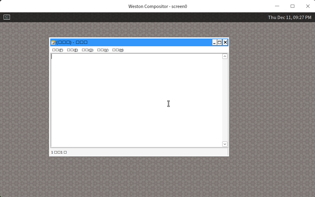 可以看到,记事本程序运行在 weston 窗口中: