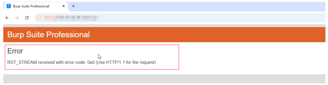 错误原因:因为 BurpSuite 在用 HTTP/2 转发流量,但是目标服务/代理或者应用不兼容,直接返回了 RST_STREAM 错误码 0xd (INTERNAL_ERROR)