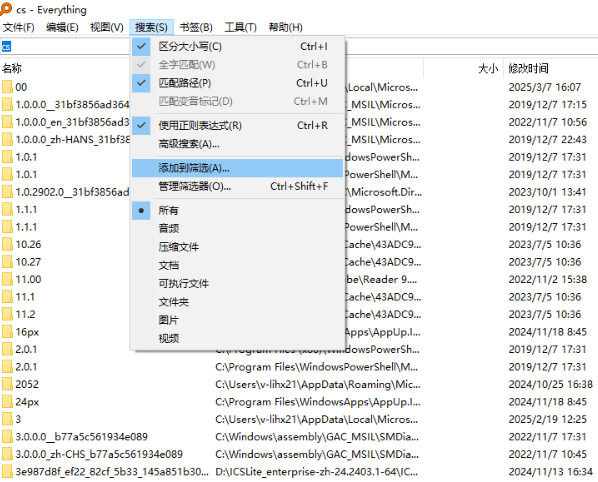 通过content:函数可搜索文件内部内容(需提前启用内容索引),如content:TODO *.cpp查找代码中的 TODO 注释。