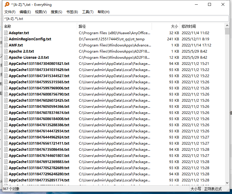 高级用户可通过正则匹配复杂模式,如^[A-Z].*\.txt检索以大写字母开头的 txt 文件。注:选择区分大小写