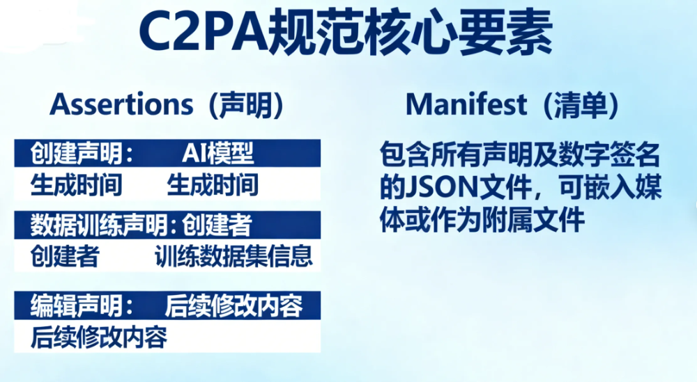 C2PA 规范核心主要包含以下几部分: