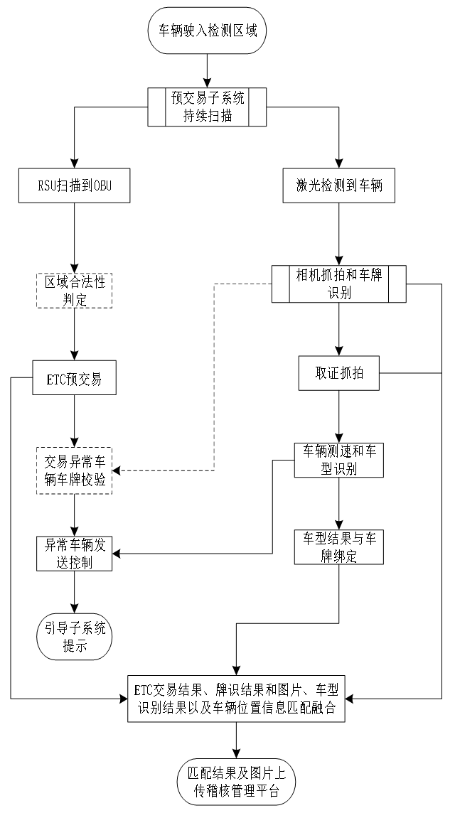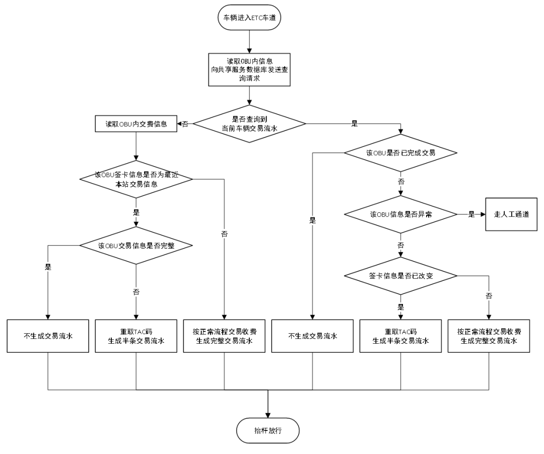 1)具备支持ETC 车辆交易功能。系统对ETC 车辆具有介质有效判定,对ETC 车辆的车辆信息及路径信息进行识别,对满足交易条件的车辆进行计费、扣款交易;