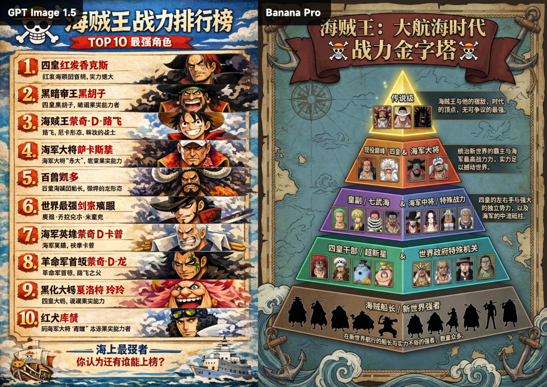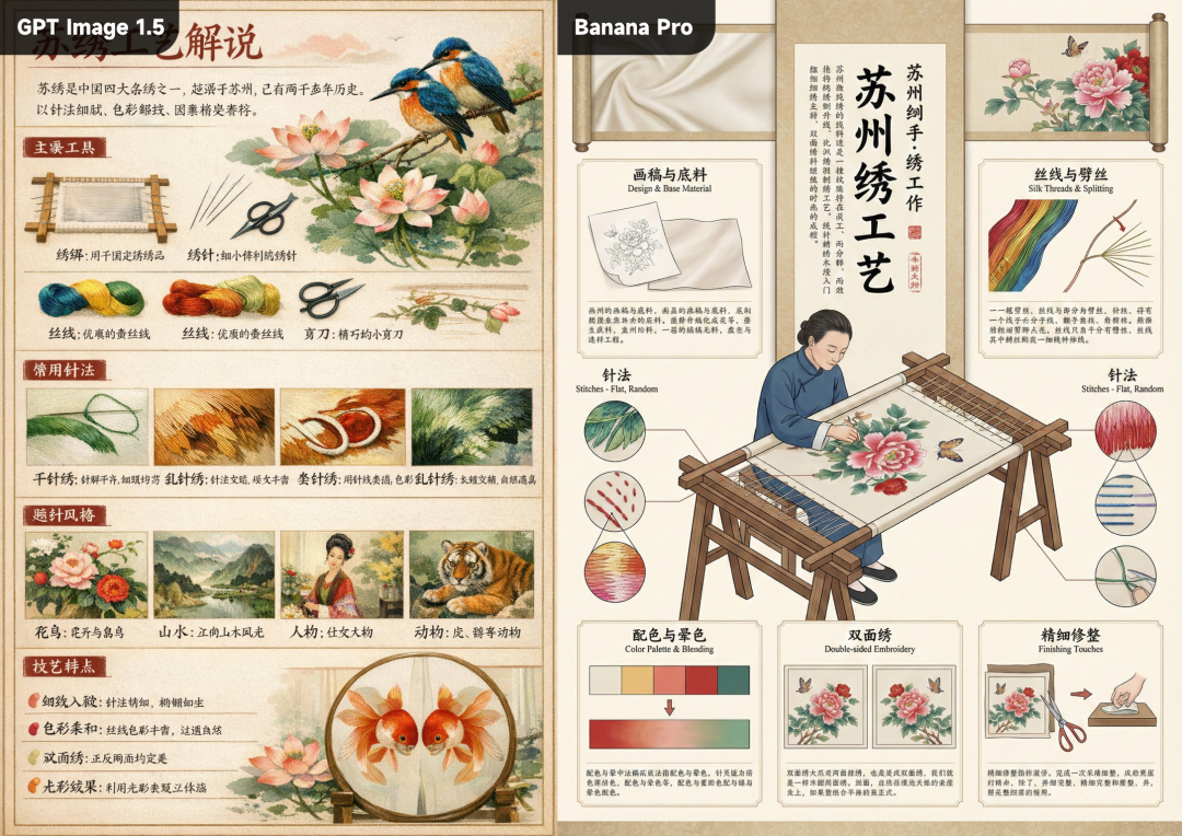 综合来看,在信息准确性上,GPT Image 1.5,确实是不如Banana Pro,而在中文字上,有非常明显的差距,Banana Pro的中文字还是很稳的。