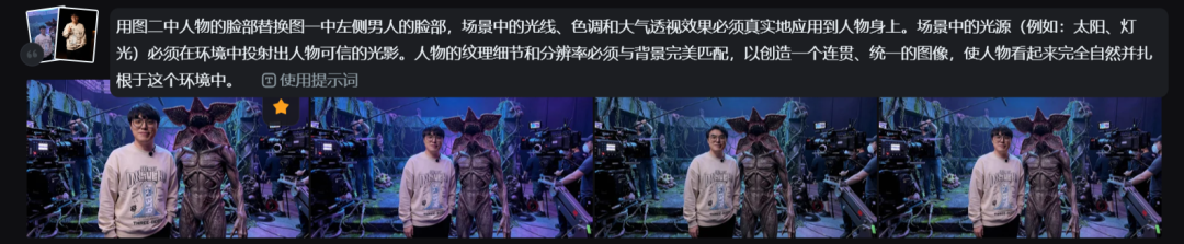 于是我给了即梦我的参考图和另一串提示词,让它把图片里的面孔替换掉。