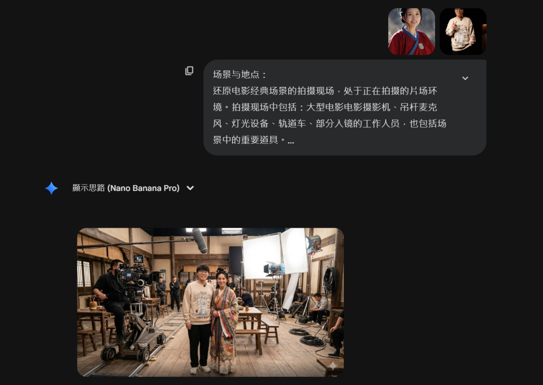 毕竟大家都知道,Nano Banana Pro的世界知识能力强的离谱,所以理论上,只要我输入影片、角色和场景,它就能get到我想要的是啥。