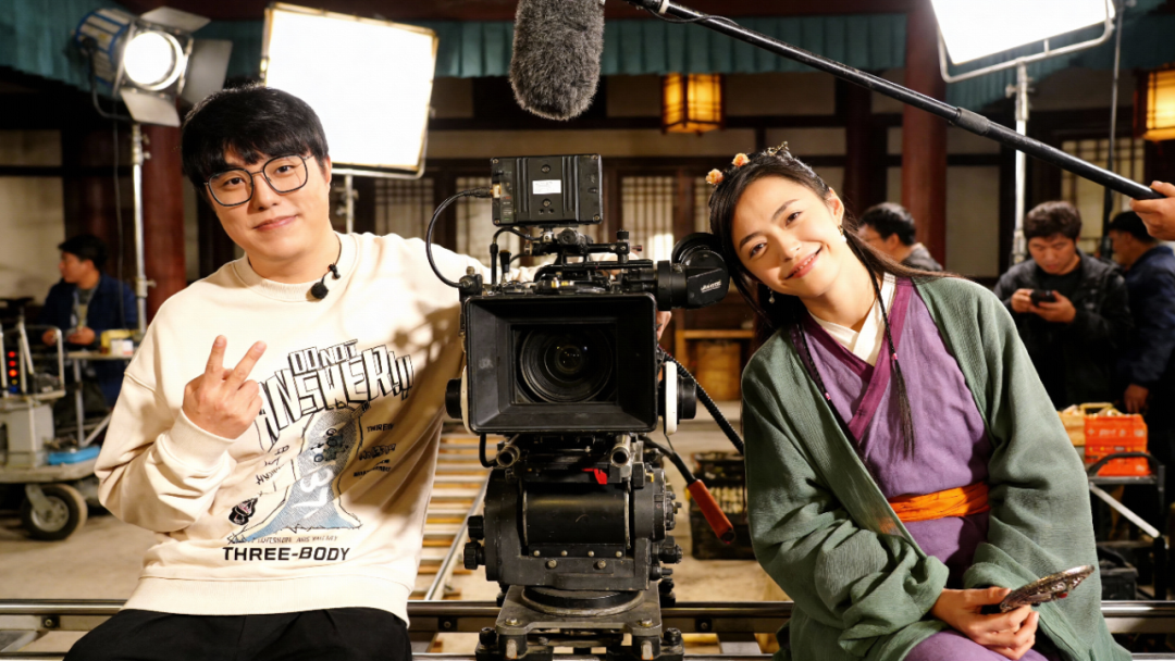 展现幕后制作的真实感,氛围捕捉到温馨但不被人看到的幕后时刻,两个人物的互动欢乐自然。