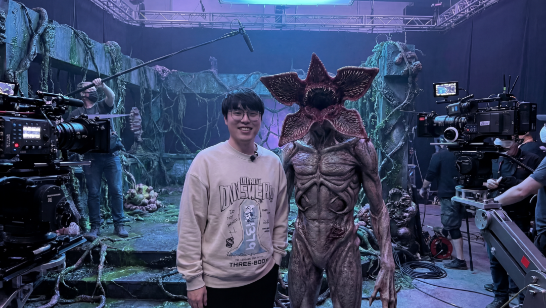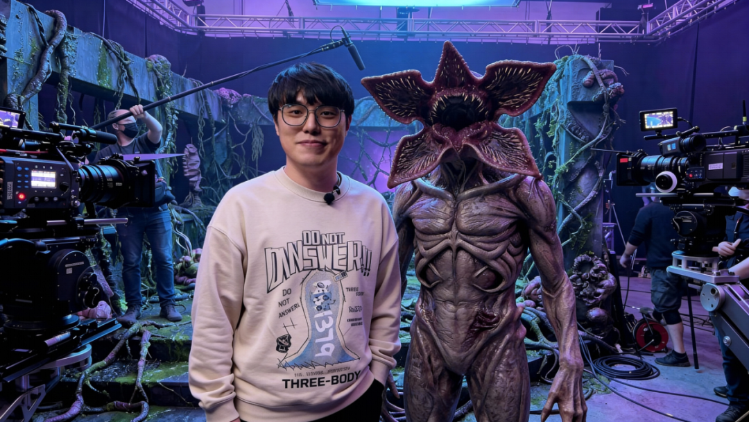 还去了趟怪奇物语片场,遇见了几个主角,还和张着大嘴的魔王花合照了一张。
