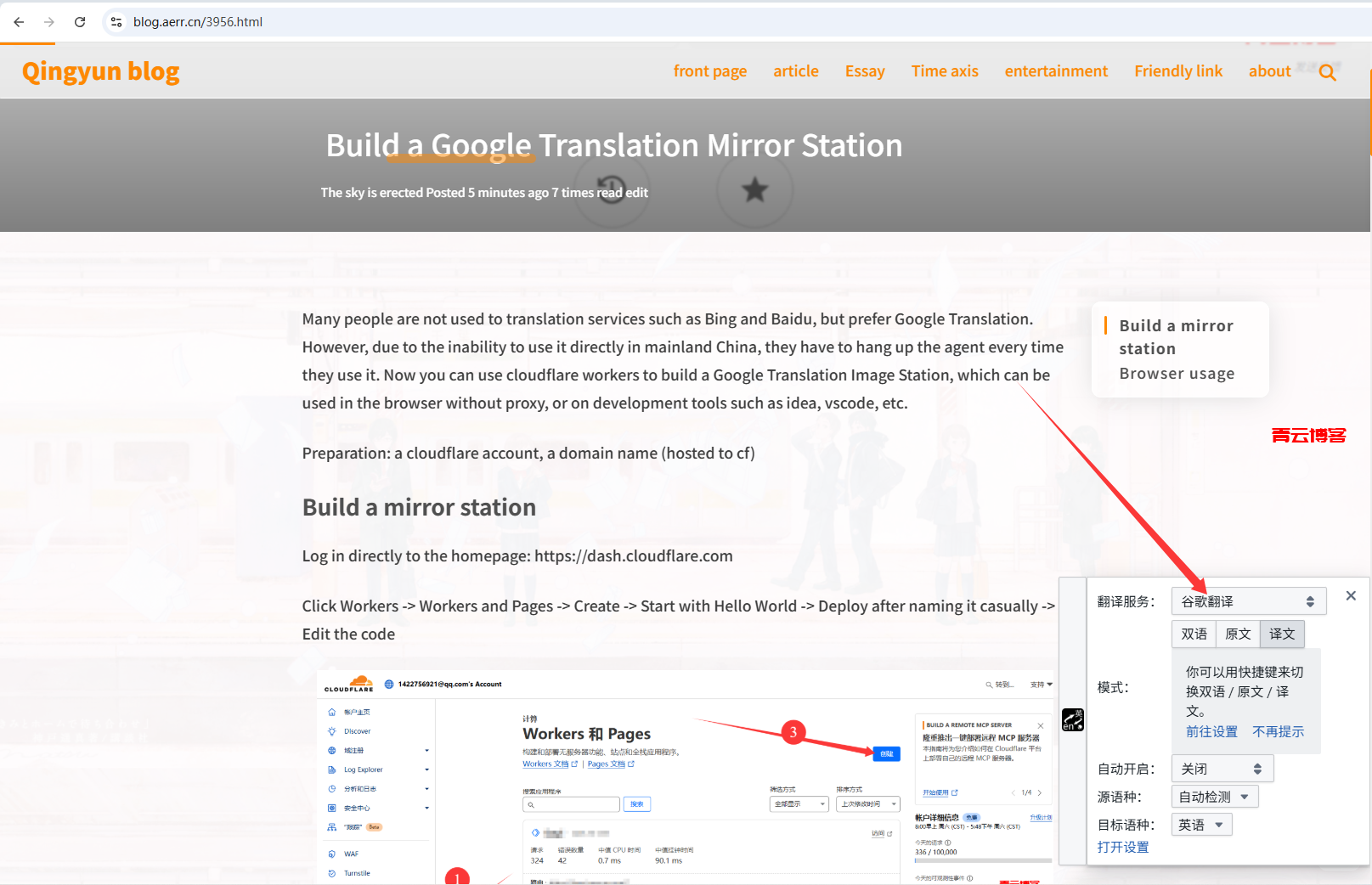 很多人不习惯必应、百度这些翻译服务,而是偏向谷歌翻译,但又碍于大陆不能直接使用,每次使用都要挂代理。现在可以使用cloudflare workers搭建谷歌翻译镜像站,可以免代理在浏览器使用,或者在idea、vscode等等开发工具上使用。