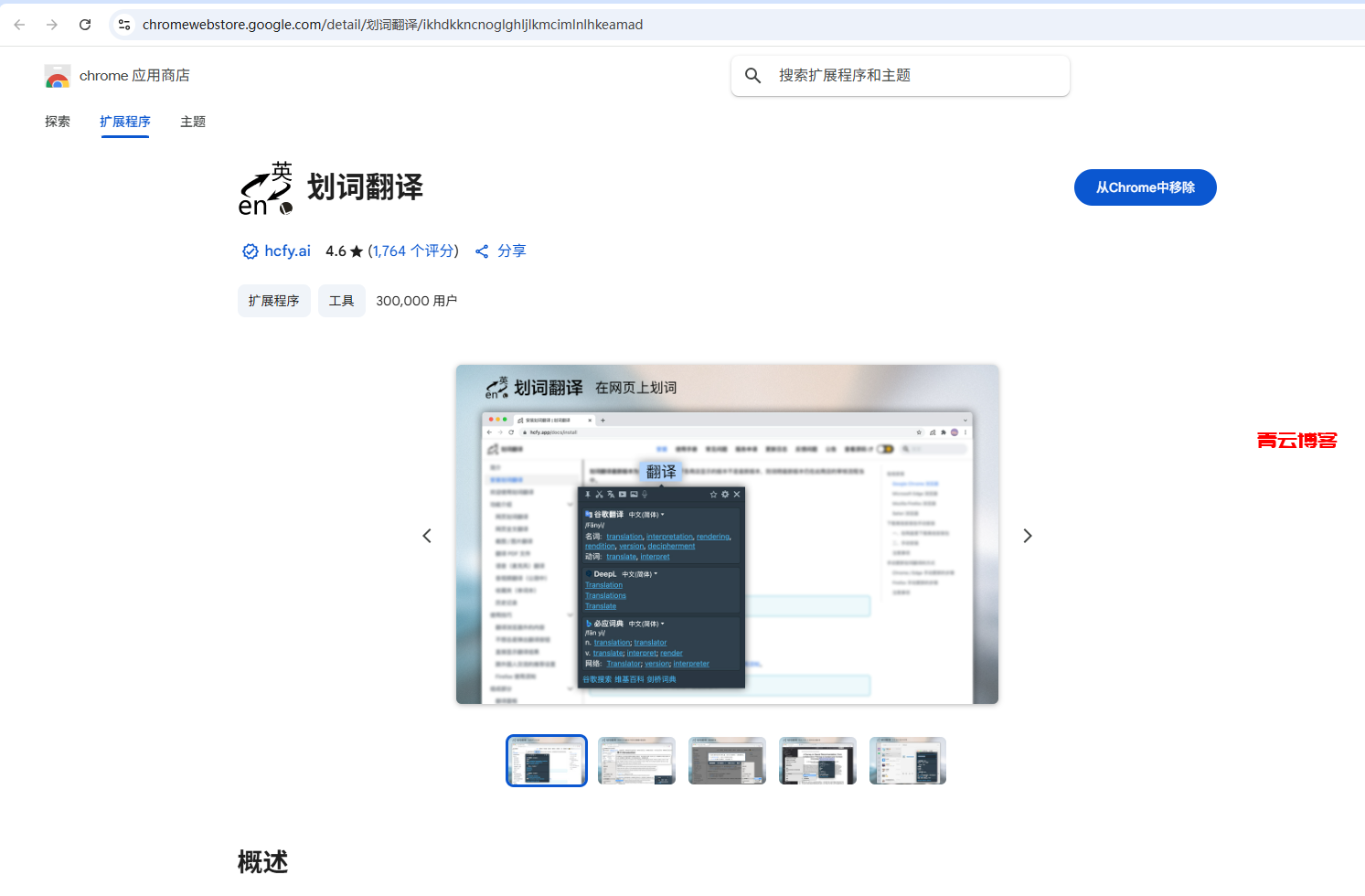 接下来就是怎么在chrome上使用了。这里演示 安装第三方扩展来使用谷歌翻译,这样的好处是可以划词翻译,并且还能使用必应,百度等等来对比。