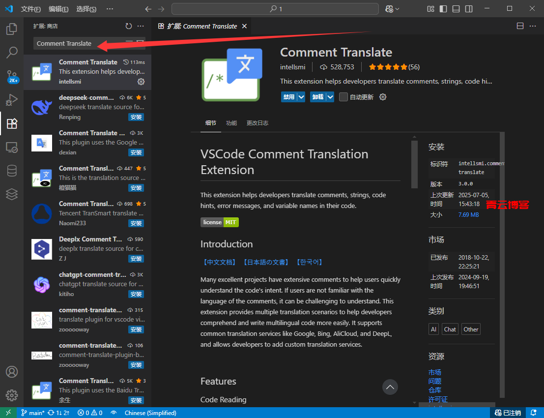 vsc直接安装这个插件:Comment Translate