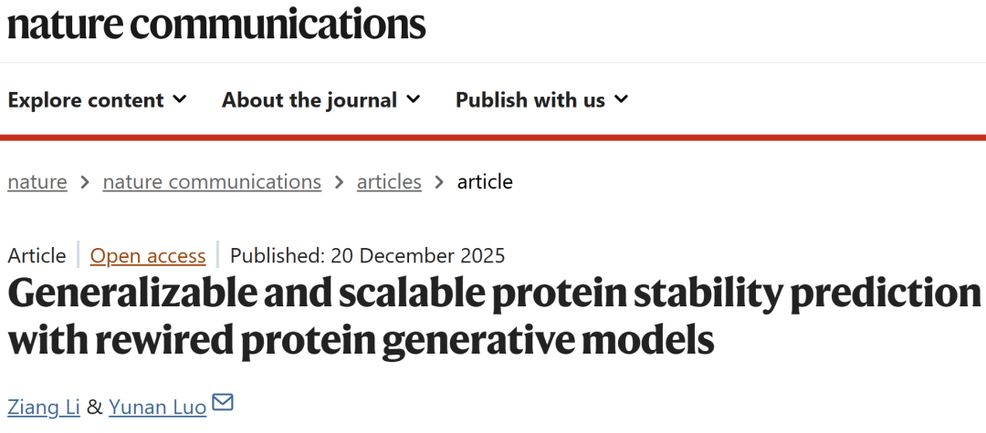 Li, Z., Luo, Y. Generalizable and scalable protein stability prediction with rewired protein generative models. Nat Commun (2025).