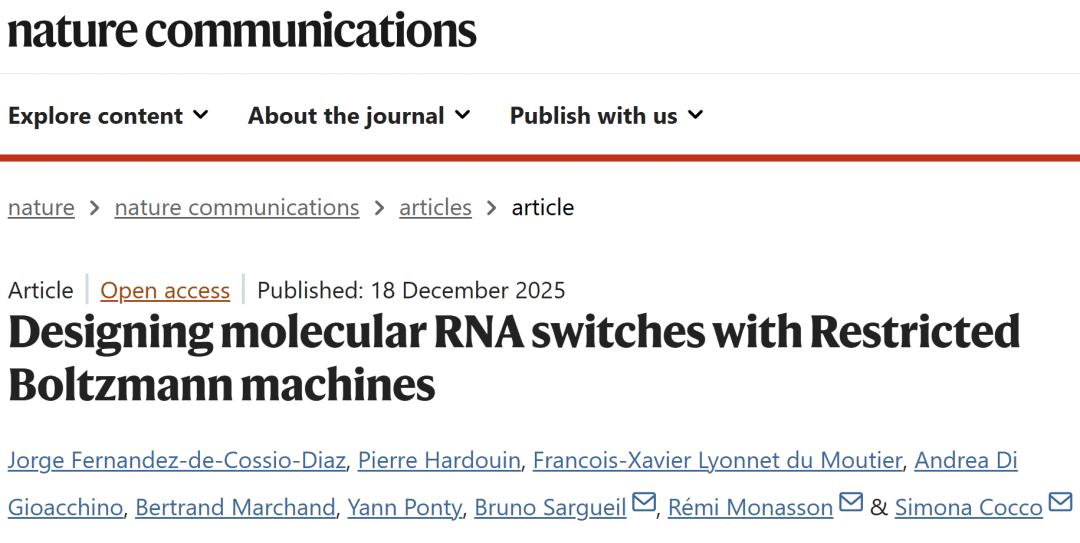 Fernandez-de-Cossio-Diaz, J., Hardouin, P., Lyonnet du Moutier, FX. et al. Designing molecular RNA switches with Restricted Boltzmann machines. Nat Commun 16, 11223 (2025).