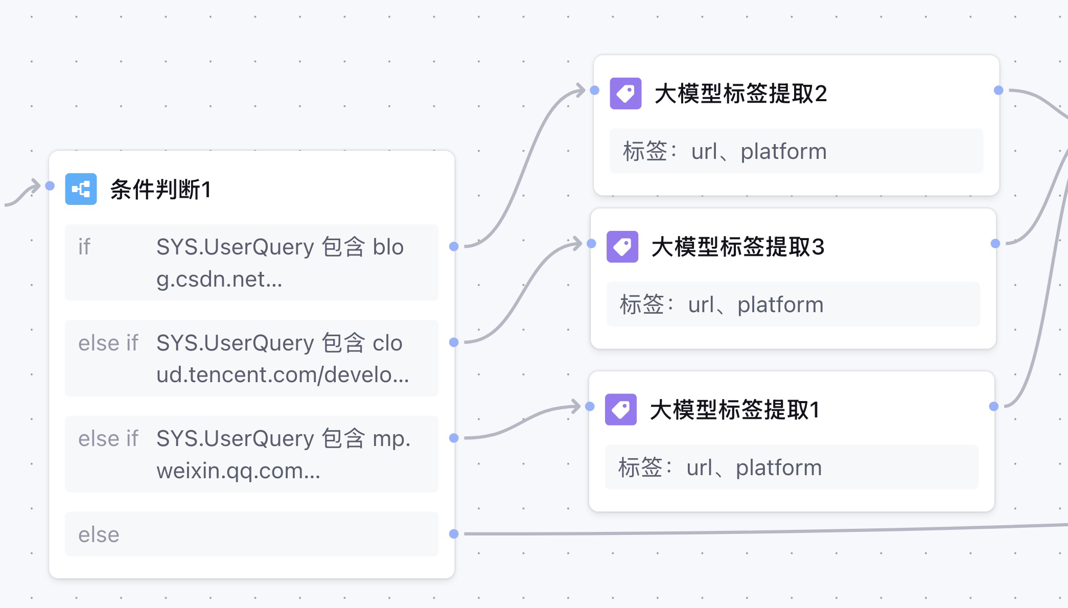 在这里我们针对于每个if条件,连接一个大模型标签提取节点用来提取url。