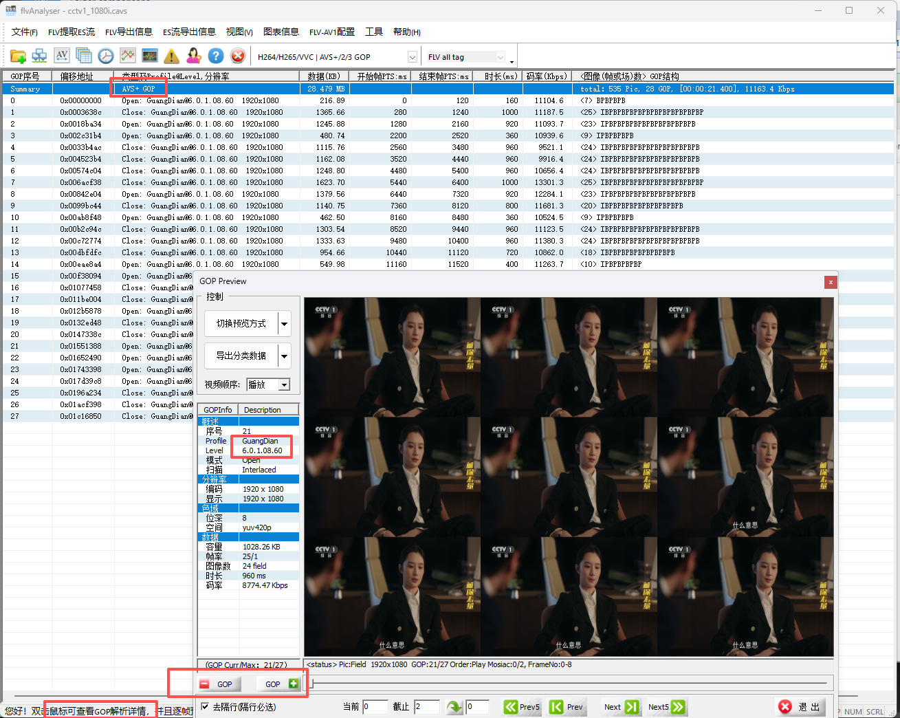 本文主要介绍 flvAnalyser 新支持 AVS1(Jizhun-P2)/AVS+(GuangDian-P16) ES分析使用方法,并提供了图示说明。